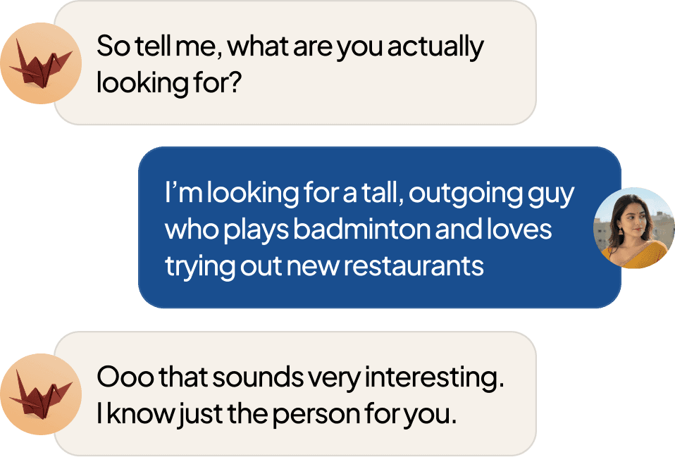 Our AI understands who you are and sets you up with people you’ll genuinely click with.